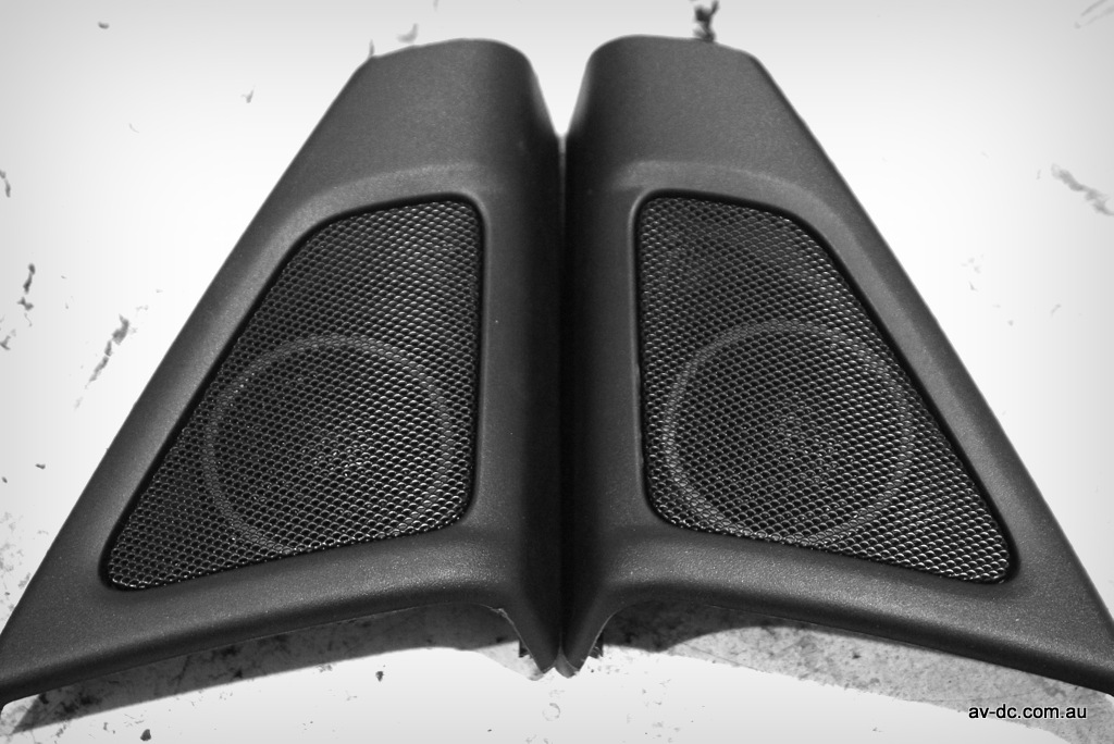 The Legatia L1 Pro R2 is a flagship tweeter in Hybrid Audio's well-developed lineup of high quality loudspeakers. The ring radiator design offers exceptionally low distortion, great off-axis response, and quite a low crossover capability for a tweeter. These characteristics give them great potential as a high sound quality tweeter, but also lend themselves well to being installed in the factory sail panel locations in the doors. The tweeter's off-axis location with a slightly down-firing angle is something we can work around to an extent with the off-axis response of the L1 Pro R2.