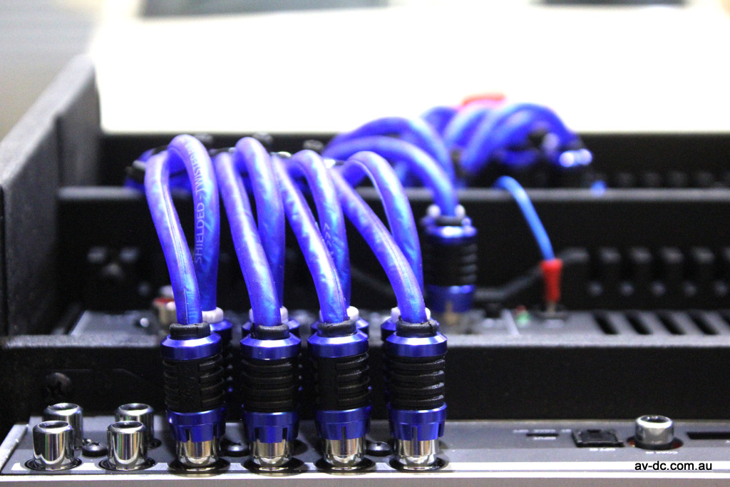 This trio is responsible for the control and power delivered to the speaker system. Power is nothing without control, and the 8to12 Pro is capable of advanced tuning of the sound system, including correcting the frequency response from the BMW iDrive system. This ensures the amplifiers are sending the optimal frequency range to each speaker, and calibrating each speaker's frequency and time response to the driver's listening position. The pair of Gladen amplifiers deliver a total of 1,080 watts to the speaker system as configured, with each speaker being afforded its own amplifier channel for the ultimate sound system configuration. The equipment is supported by Stinger 6000 series RCA interconnects and power hardware.