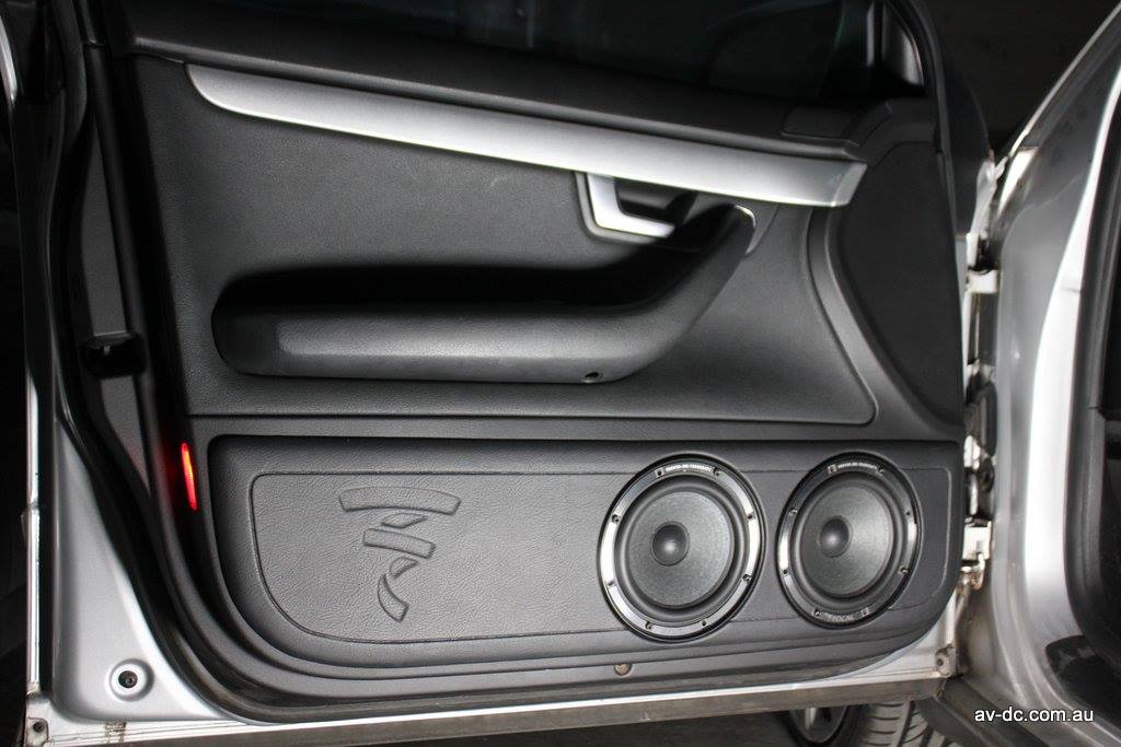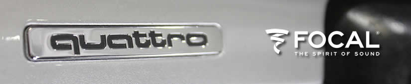 Like Audi's Quattro all-wheel-drive system, we're using four of Focals's 165 v30 Polyglass midbass drivers to handle midbass duties up front. A second set of door trims were customised with new baffles in the map pocket area to house the dual midbasses as well as a focal logo which we CNC machined in-house. We constructed these baffles to show off the brilliant Focal midbass drivers, but also fit in with the clean aesthetic of Audi's door trim.