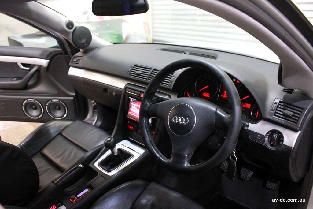 Focal celebrated their 30th anniversary with a special set of Polyglass component speakers, the 165 v30. This three-way set is featured in the front of the A4, with midranges and tweeters housed in custom A pillars, trimmed in factory fabric. While working on the pillars, the sagging roof liner was also re-trimmed.