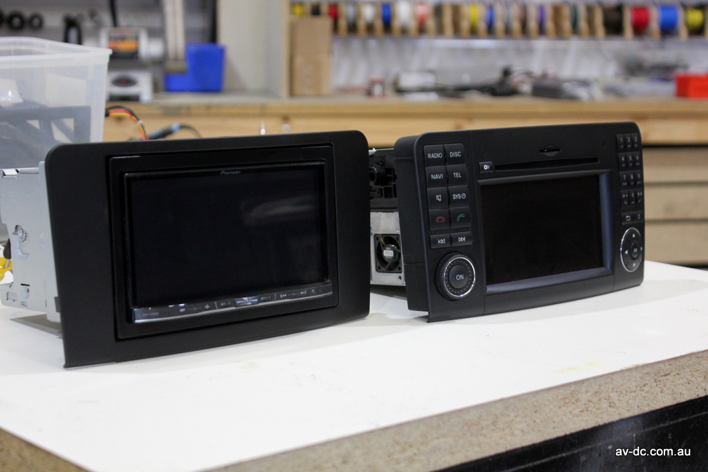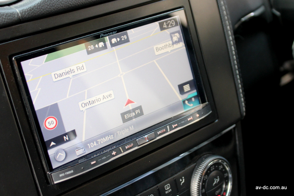 So, the Pioneer is a great unit, but making this Mercedes CarPlay upgrade work well in the car is the key to a useful upgrade. The replacement facia fits it in the place of the factory unit, it works with the Harman Kardon sound system just like the factory unit, and the steering wheel buttons control the Pioneer unit just like they did the factory radio. The factory reversing camera is also maintained, displaying automatically when reverse is selected.